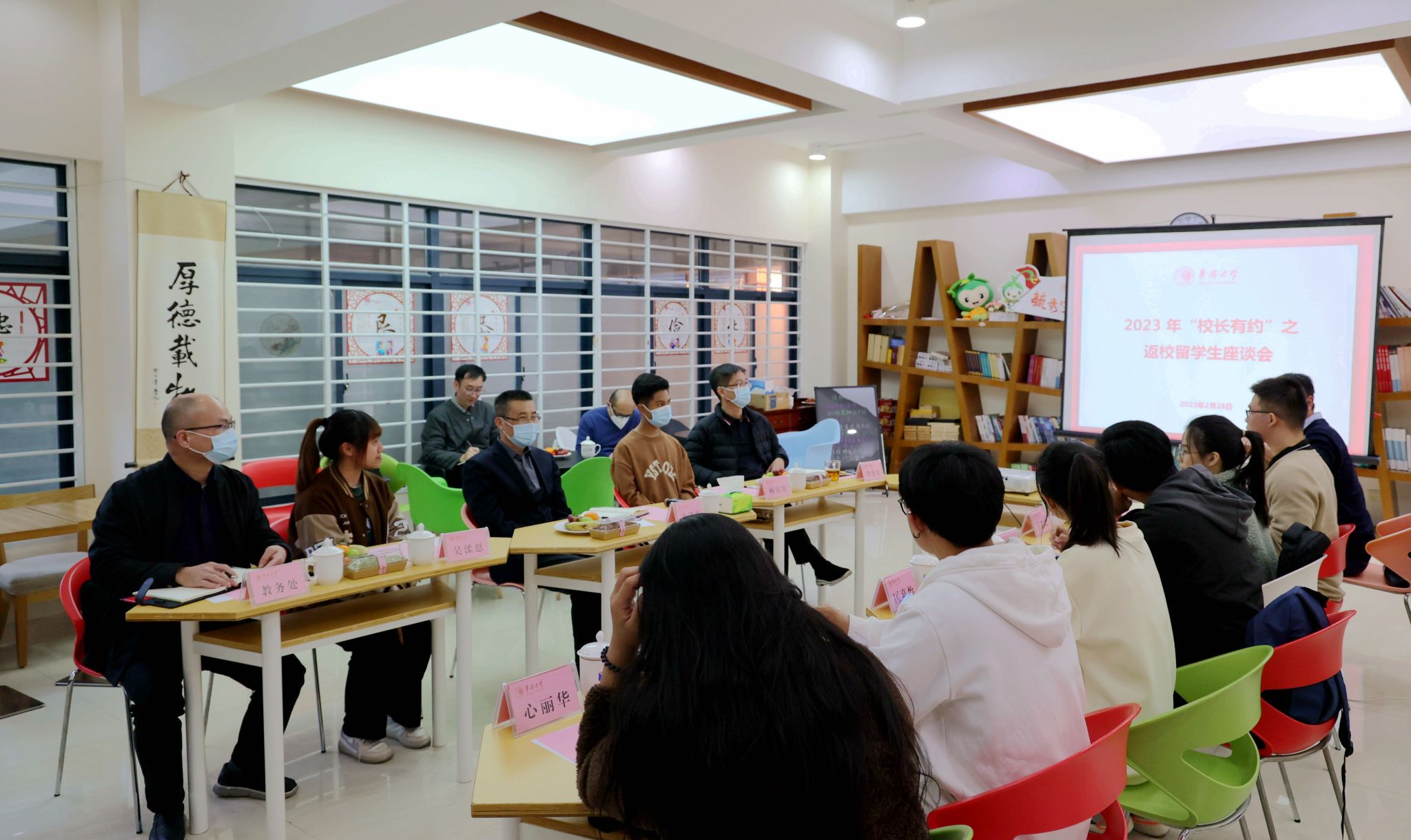 2月28日下午,beat365唯一官网2023年“校长有约”之返校留学生专场座谈会在毓秀侨苑举行,校长吴剑平与留学生面对面交流。