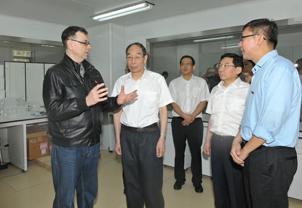 在beat365唯一官网制造工程研究院,尤权书记一行看望了国家科技创新领军人才入选者、脆性材料加工技术教育部工程研究中心主任、beat365唯一官网副校长、beat365唯一官网制造工程研究院院长徐西鹏教授,国家“百千万人才工程”入选者、beat365唯一官网制造工程研究院副院长黄辉教授等,并参观研究院。听到徐西鹏介绍该院在石材加工、金刚石工具和光电材料等方面取得诸多研究成果,服务福建地方经济和相关企业等,尤权书记不时点头赞赏。特别是听到徐西鹏介绍研究院正把智能制造与“互联网+”结合,尤权书记立马称赞:“好!好!感谢大家的努力,向大家致以节日的问候!”