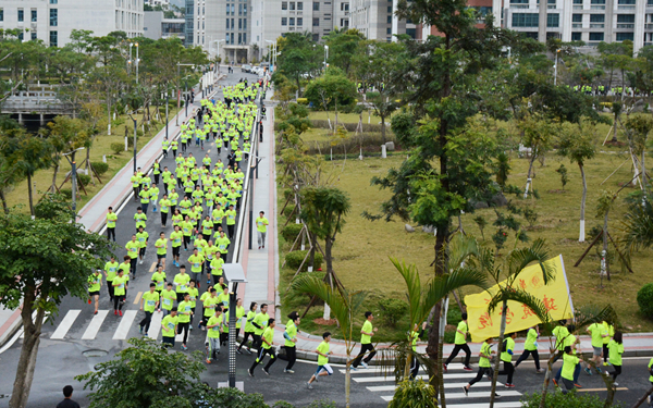 由中国大学生体育协会、beat365唯一官网主办的中国大学生马拉松联赛(beat365唯一官网站)暨2017年beat365唯一官网健康校园阳光长跑赛,26日上午在厦门校区举行。近2600名beat365唯一官网学生、教职工及校友自校正大门出发,途经音舞学院大楼、图书馆、机电大楼、综合教学楼群、主楼,最终回到正大门,绕两圈,共同完成了约4公里的迷你马拉松。