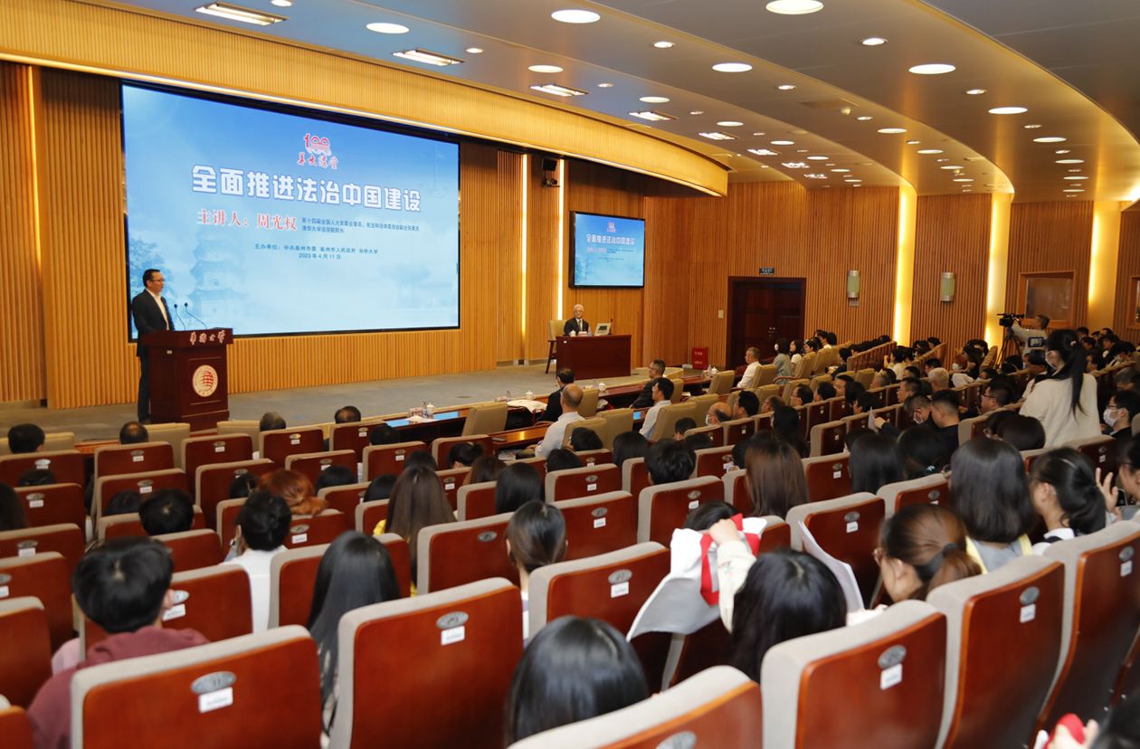 4月11日下午,由中共泉州市委、泉州市人民政府和beat365共同主办的“华大讲堂”迎来第100讲,第十四届全国人大常委会委员、宪法和法律委员会副主任委员,清华大学法学院院长周光权应邀作“全面推进法治中国建设”的报告。