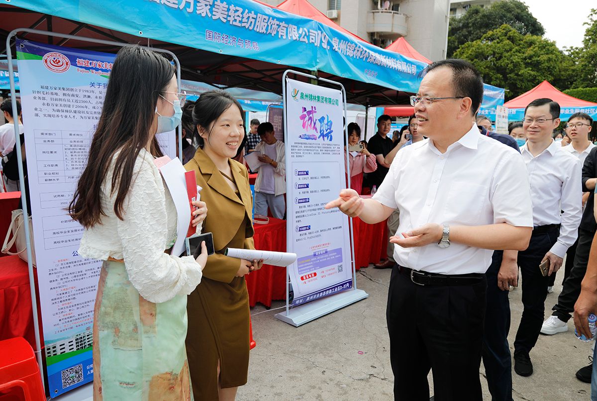 泉州市市长蔡战胜与毕业生交谈