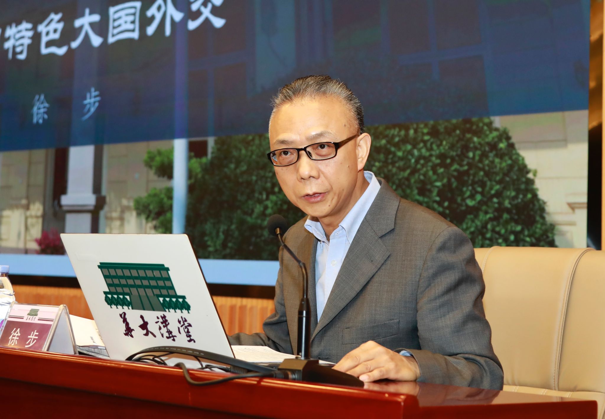 报告中,徐步结合自身外交实践,立足党的二十大报告对国际形势和中国外交政策的重要论述,运用丰富案例,详细阐述了百年未有之大变局下新时代中国特色大国外交的历史方位、生动实践和辉煌成就,解读了习近平外交思想丰富内涵与核心要义,并就新时代新征程如何深入学习习近平外交思想,如何正确看待当前国际关系形势提出了个人见解。