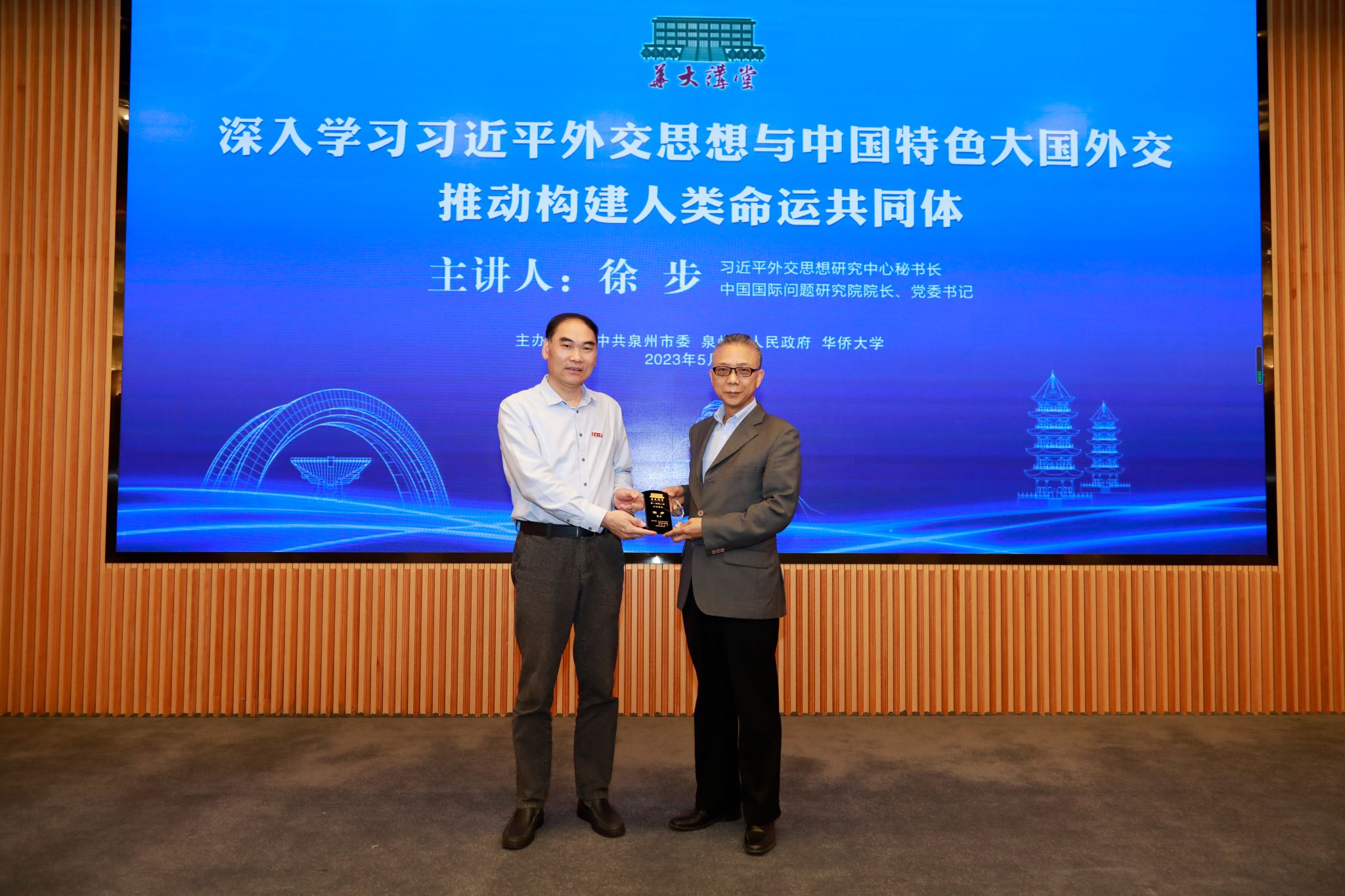 讲座前,副校长王秀勇为徐步颁授“华大讲堂”主讲嘉宾纪念牌。副校长林宏宇主持报告会。