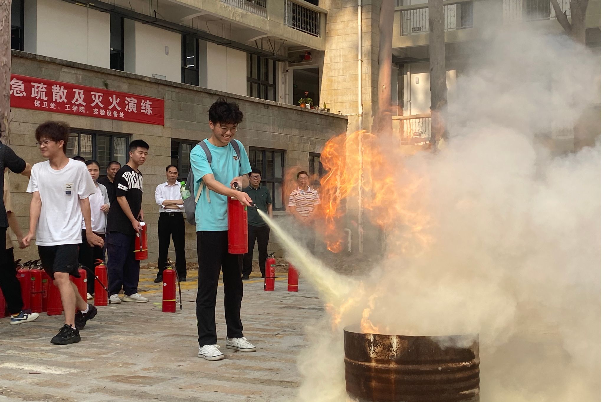 学生体验灭火器实际操作