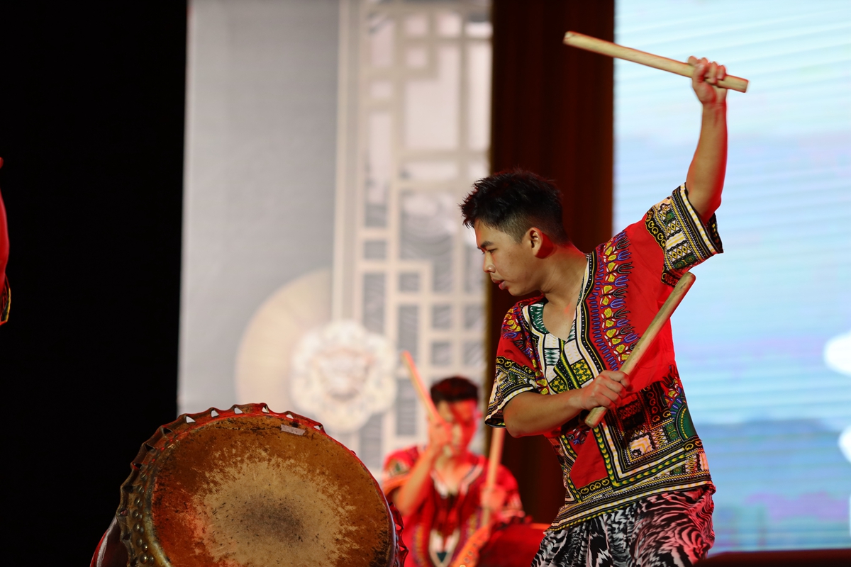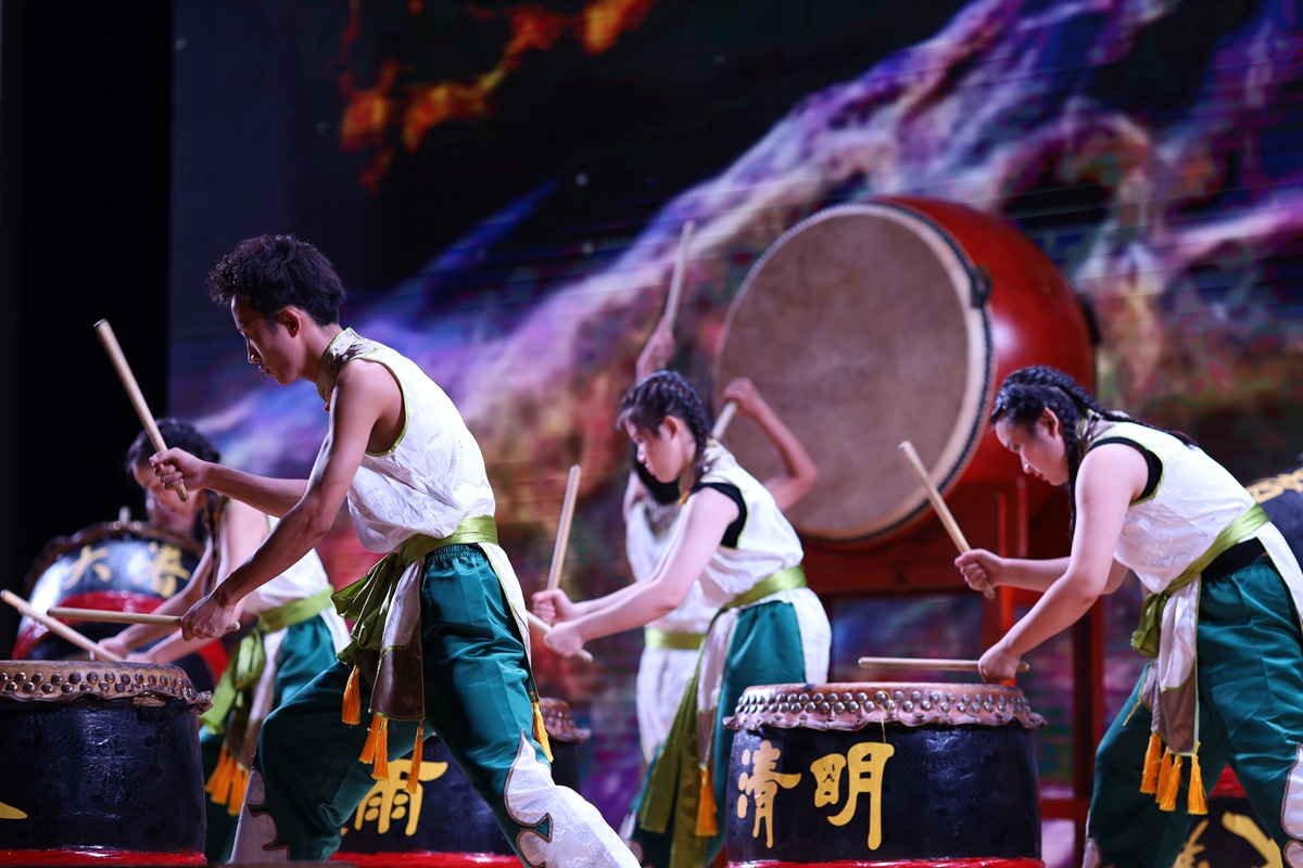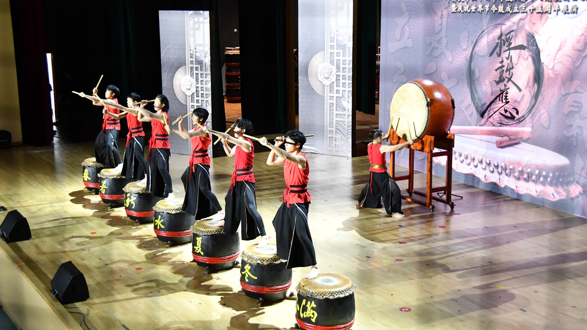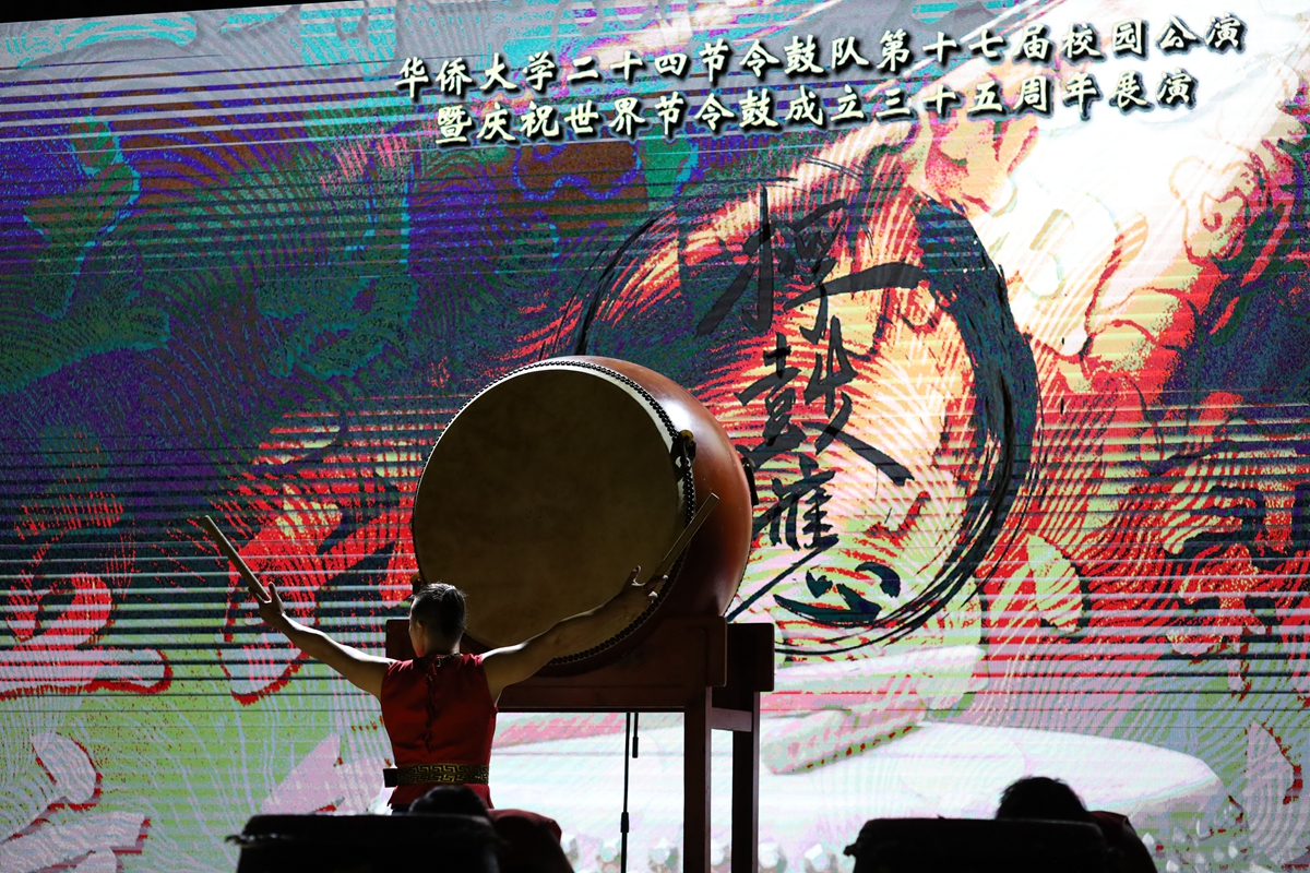 来自马来西亚的体育学院2021级学生冯礼玺从十岁就开始接触二十四节令鼓,认为二十四节令鼓是马中民间友好往来的桥梁之一,是有重要意义的非物质文化遗产。他说:“鼓声像人们的心跳,可以牵动观众的情绪,我们尽全力地表演是希望观众可以感受到其中的快乐并喜爱上这样的传统文化。”