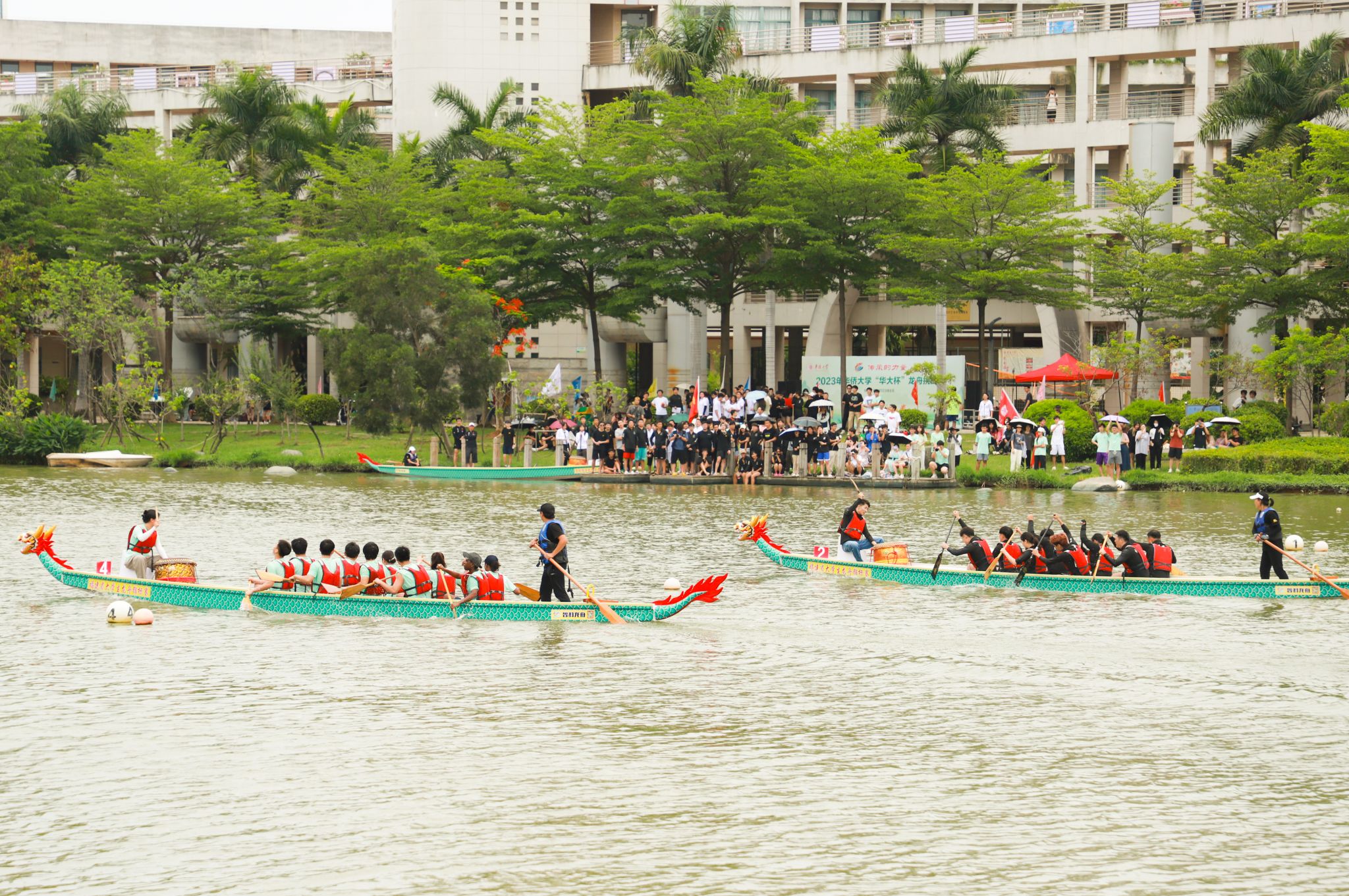 龙舟竞渡,飞桨逐浪。端午佳节将至,2023年beat365唯一官网“华大杯”龙舟挑战赛,6月11日在白鹭湖举行。来自10个学院代表队的120名境内外师生携手共竞,体验和传承中华龙舟文化。