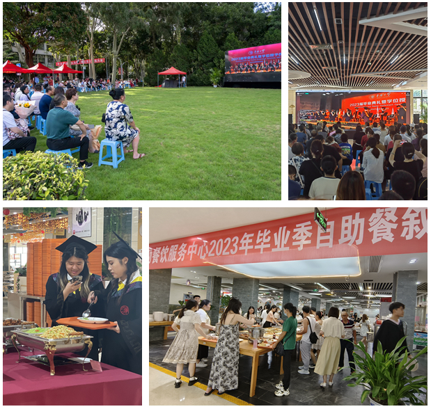 典礼当天,家长通过场外大屏幕观看典礼,学校并首次为毕业生提供免费自助餐