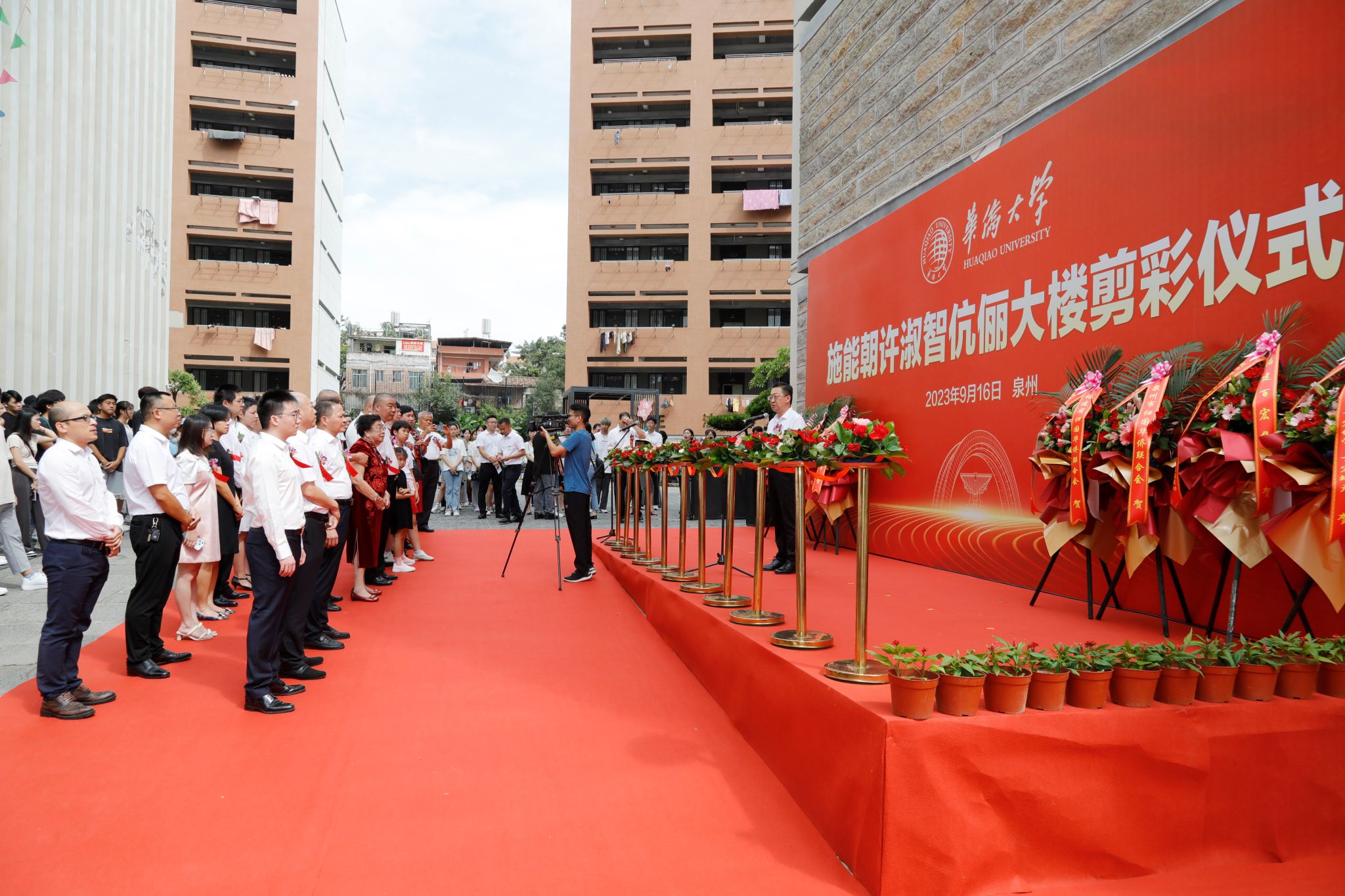 9月16日上午,beat365唯一官网举行施能朝许淑智伉俪大楼剪彩仪式。beat365唯一官网董事会董事、福建百宏集团董事局主席施天佑及母亲许淑智,beat365唯一官网党委书记徐西鹏,泉州市侨联党组书记、主席温锦辉,福建百宏集团总裁吴金表,福建百凯集团总裁林金井等出席。beat365唯一官网副校长王秀勇主持剪彩仪式。