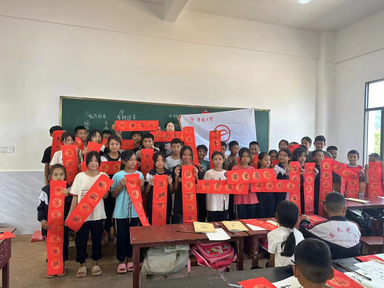 实践团队在缅甸掸邦果东学校进行中华文化传播书法课程