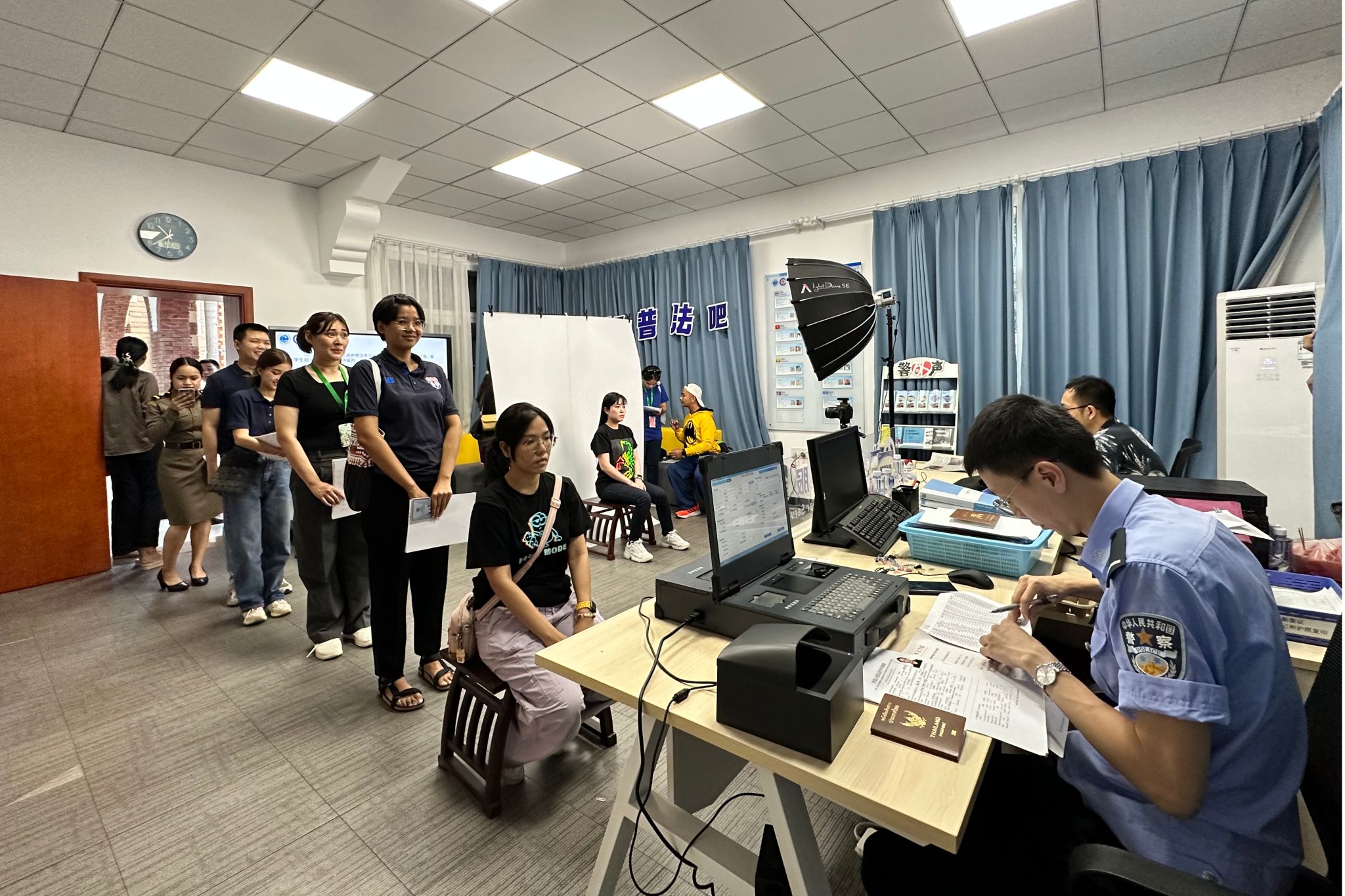 为方便留学生们办理留学签证,9月份以来,厦门市公安局出入境管理支队定期上门为beat365留学生受理证件办理业务。留学生们在校内留学生管理服务站直接递交签证办理材料、采集照片和个人信息,享受“一站式”“码上办”服务。