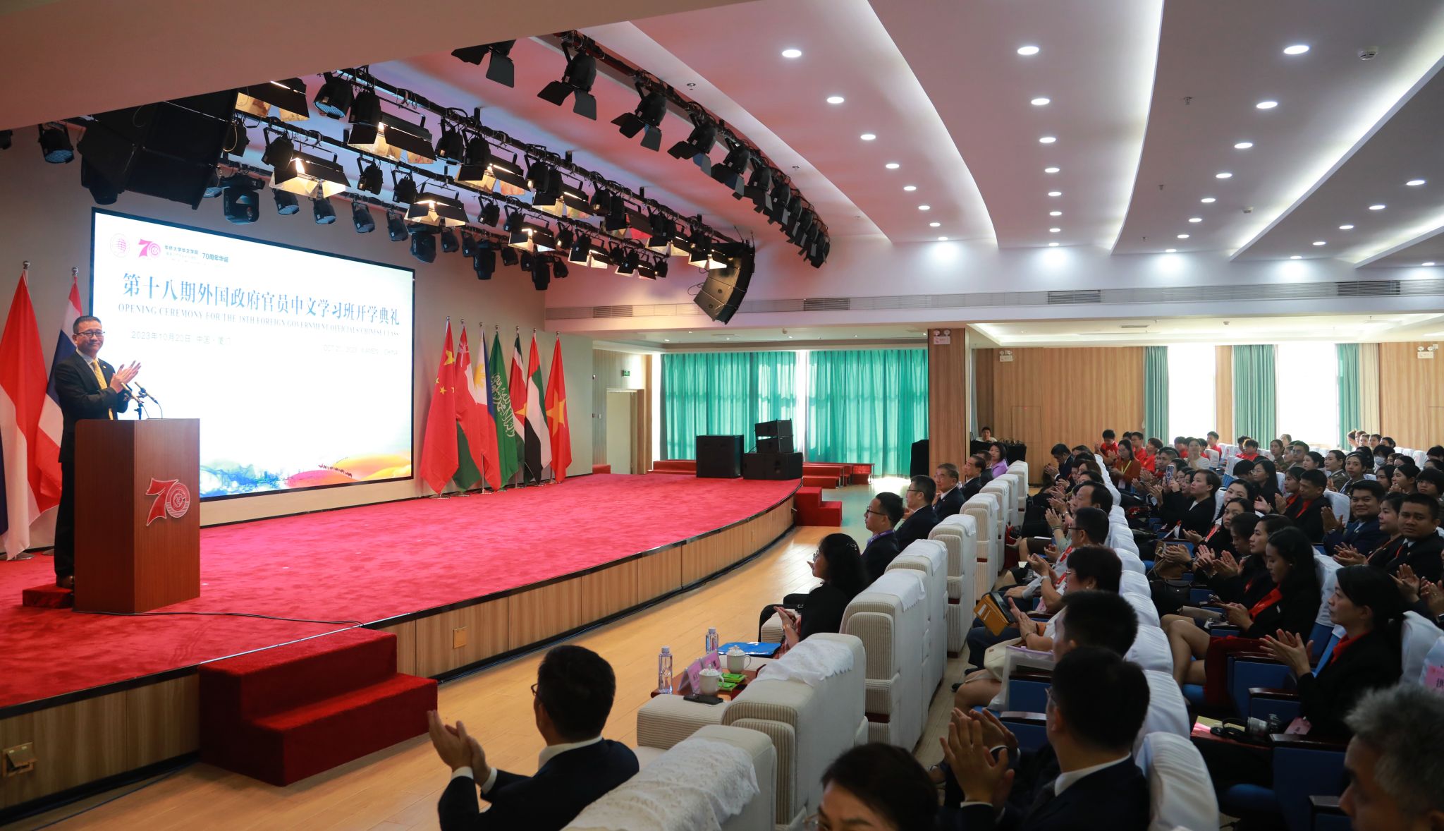 第十八期外国政府官员中文学习班开学典礼,当日上午在华文学院举行。