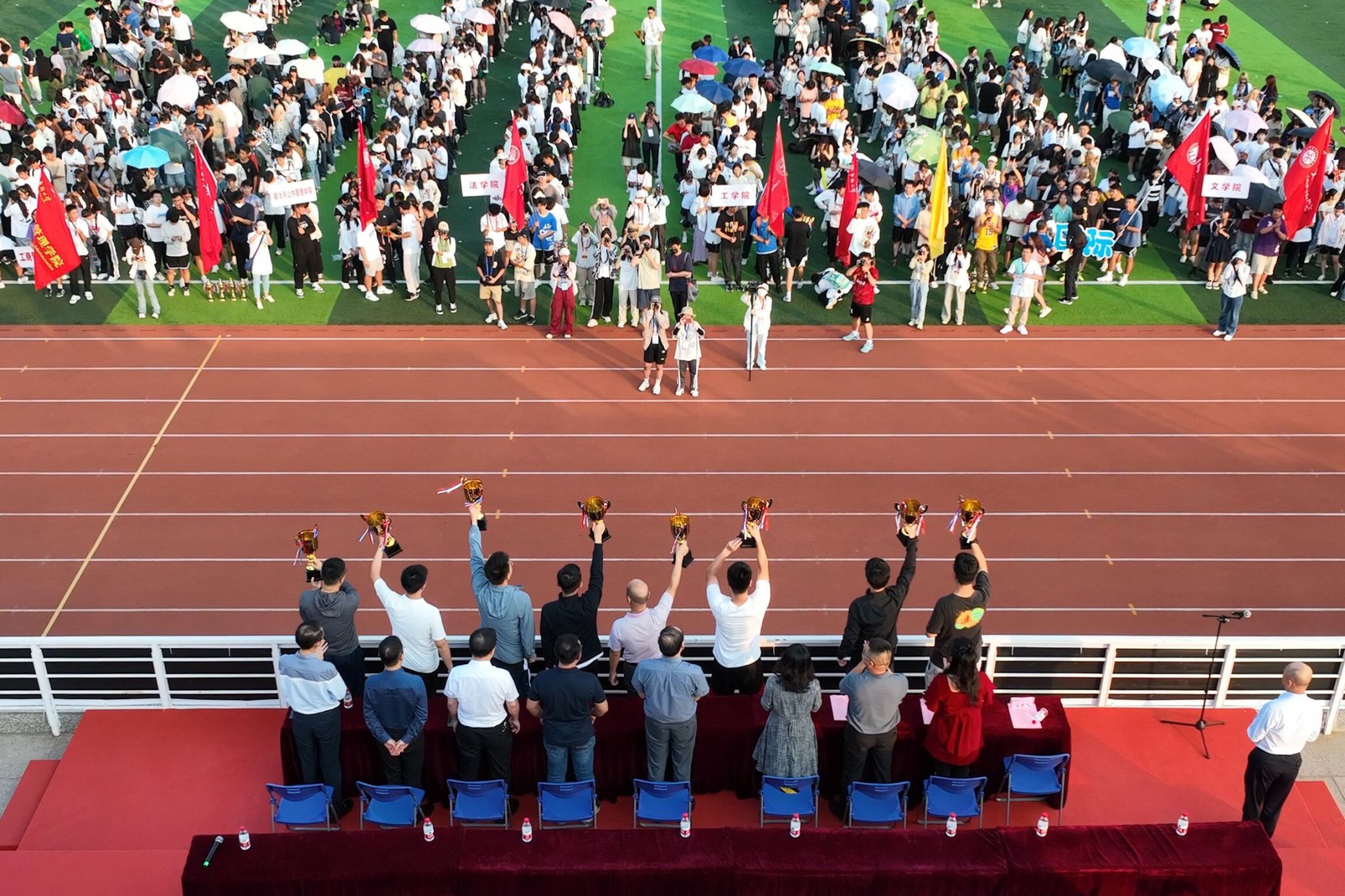 副校长王秀勇致闭幕辞,感谢裁判员与工作人员的辛勤付出,祝贺取得优异成绩的运动员与获奖集体。“把赛场上迸发出的精气神和正能量融入到今后的学习和工作中去。”他勉励大家以饱满的热情和昂扬的斗志,在青春的赛道和人生的赛场上不断创造辉煌。