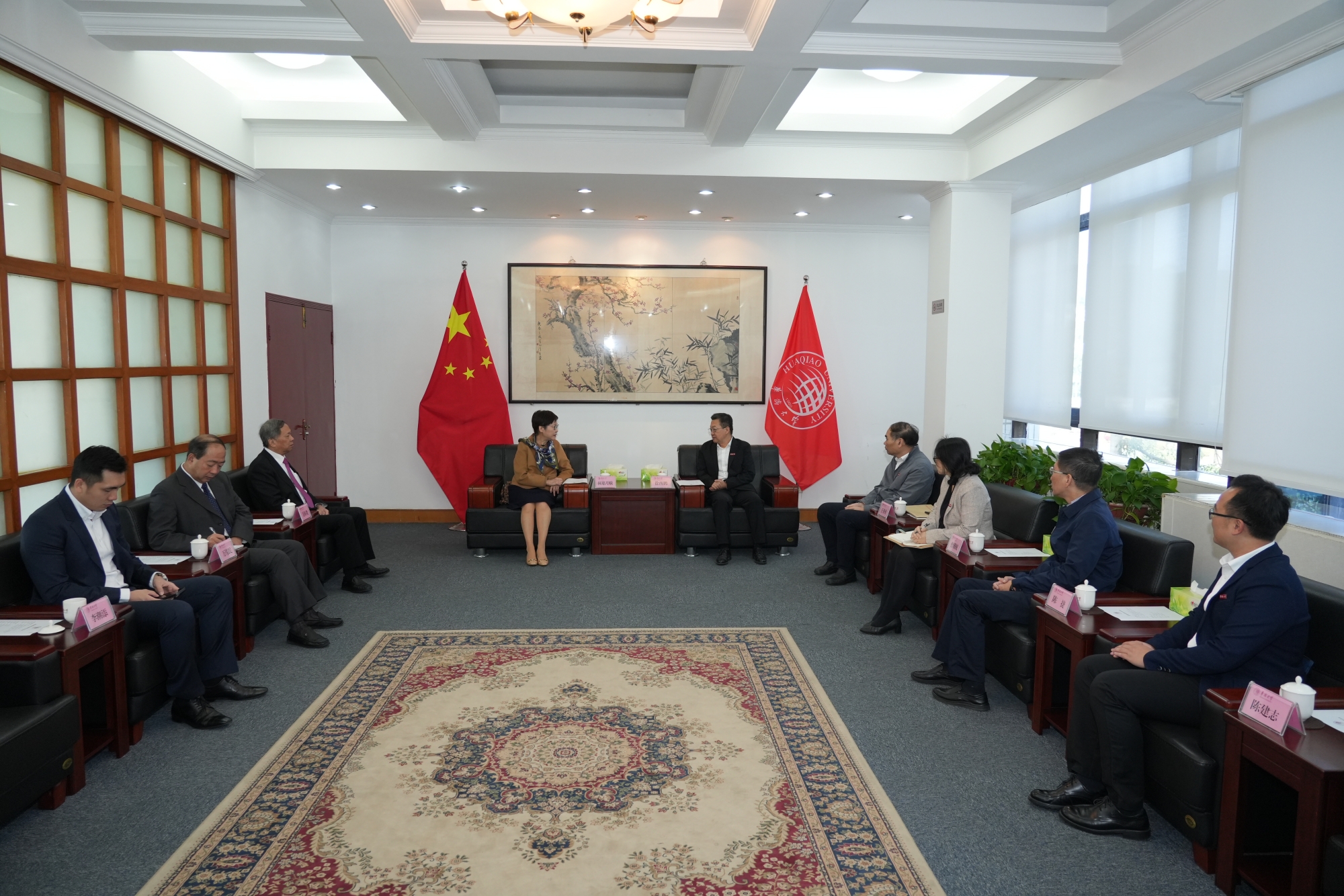 beat365唯一官网党委书记徐西鹏、副校长王秀勇会见林郑月娥女士一行并出席相关活动。全国侨联副主席、香港福建社团联会荣誉主席吴换炎等陪同访问。