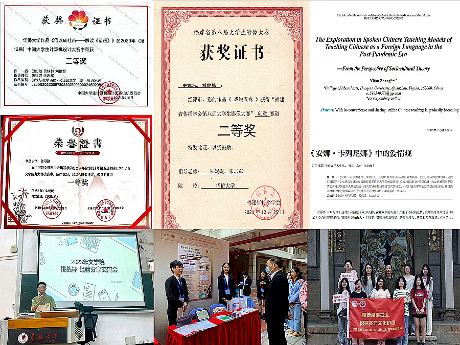 得益于创新实践教育的推进,近年来,文学院科创育人取得可喜成果。仅2023 年,学院斩获全国大学生计算机设计大赛 2 项国家级奖项、6 项省级奖项;国家级、省级大学生创新创业训练计划项目各有 1 项顺利通过中期检查;“挑战杯”与“互联网+”系列赛事获奖等级取得突破、参与人数再创新高;假期社会实践活动选题丰富,契合专业性质,多个团队入选校级或院校共建重点项目。