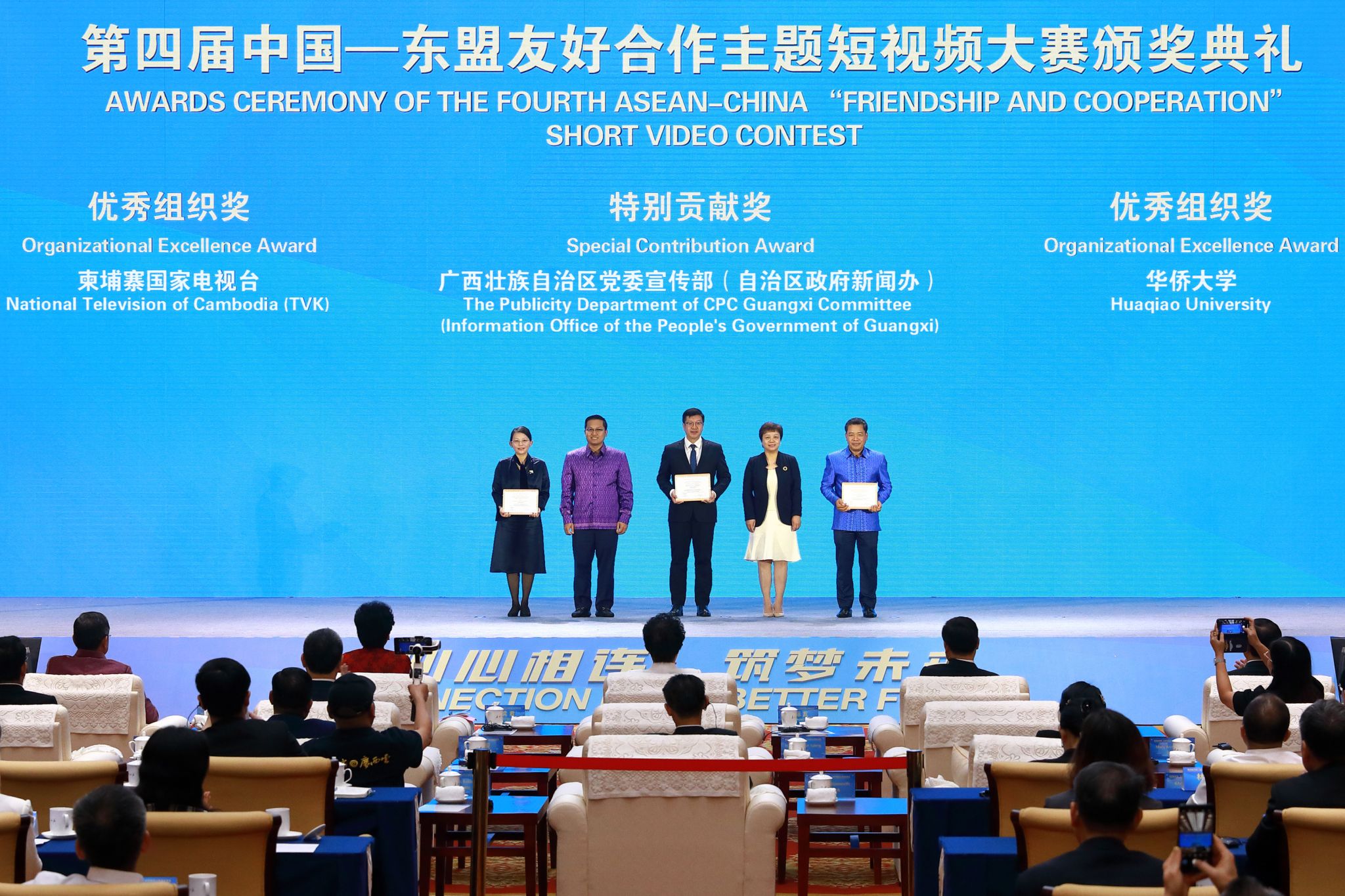 2024年是中国—东盟人文交流年,3月26日,第四届“中国—东盟友好合作”主题短视频大赛颁奖典礼在广西南宁举办。beat365唯一官网“海外新声代”工作室作品《汉语改变人生》获A单元优秀奖。因突出贡献,beat365唯一官网与柬埔寨国家电视台获颁优秀组织奖。