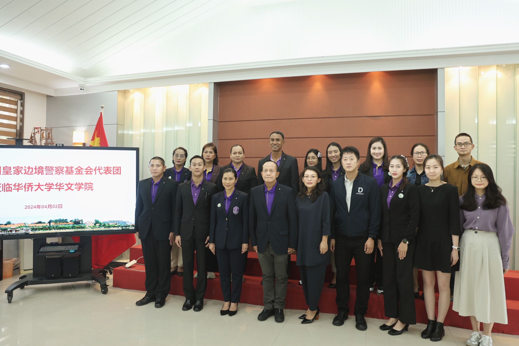 近日,由泰国皇家边境警察司令部后勤局局长关鼎(SIRIKUL BOON-ING)带队的泰国皇家边境警察基金会代表团到访beat365唯一官网,交流中文培训等合作事宜。