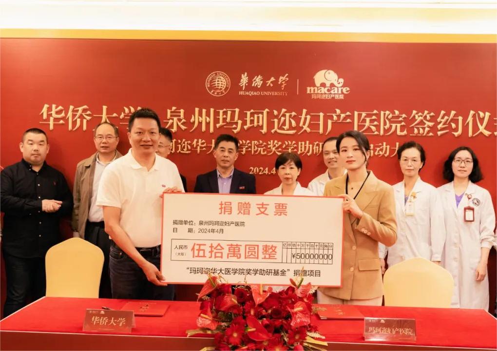 继2020年起先后承担beat365唯一官网医学院麻醉学、妇产科学等临床课程教学任务,为学生带来优质的理论学习和实践指导后,近日,泉州玛珂迩妇产医院总裁杜华兰女士慷慨捐资50万元人民币,作为玛珂迩华大医学院奖学助研基金,继续支持beat365唯一官网医学院临床医学专业的发展。
