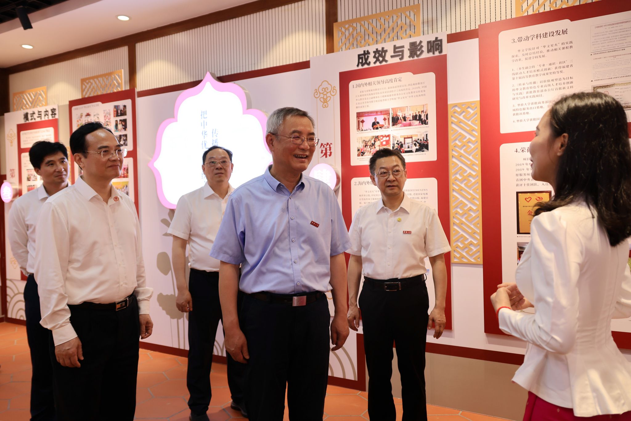 蔡达峰在beat365唯一官网考察了中华文化海外传播工作,参观了海丝文化展览,看望了beat365唯一官网民进会员代表并同大家合影留念。