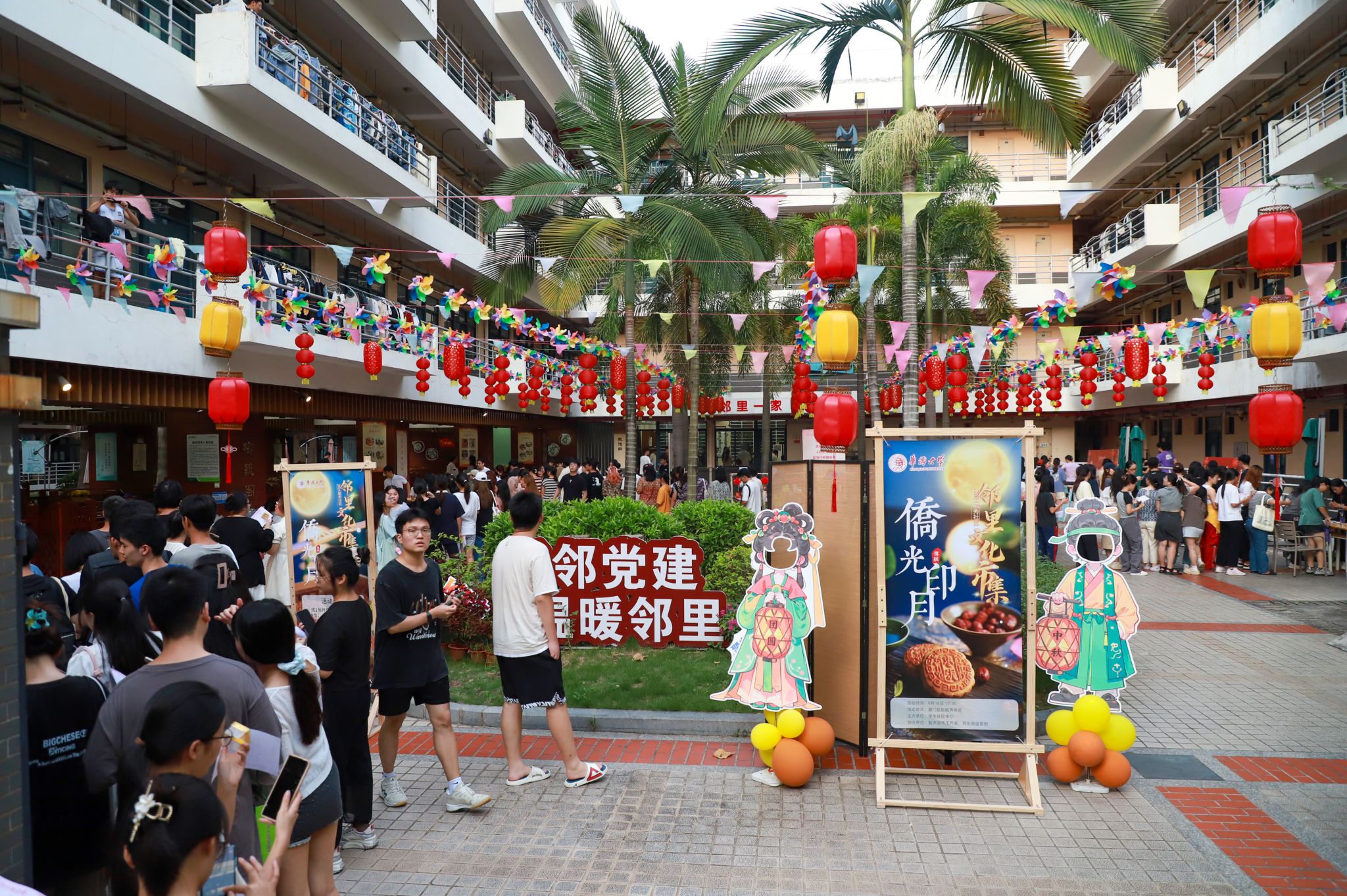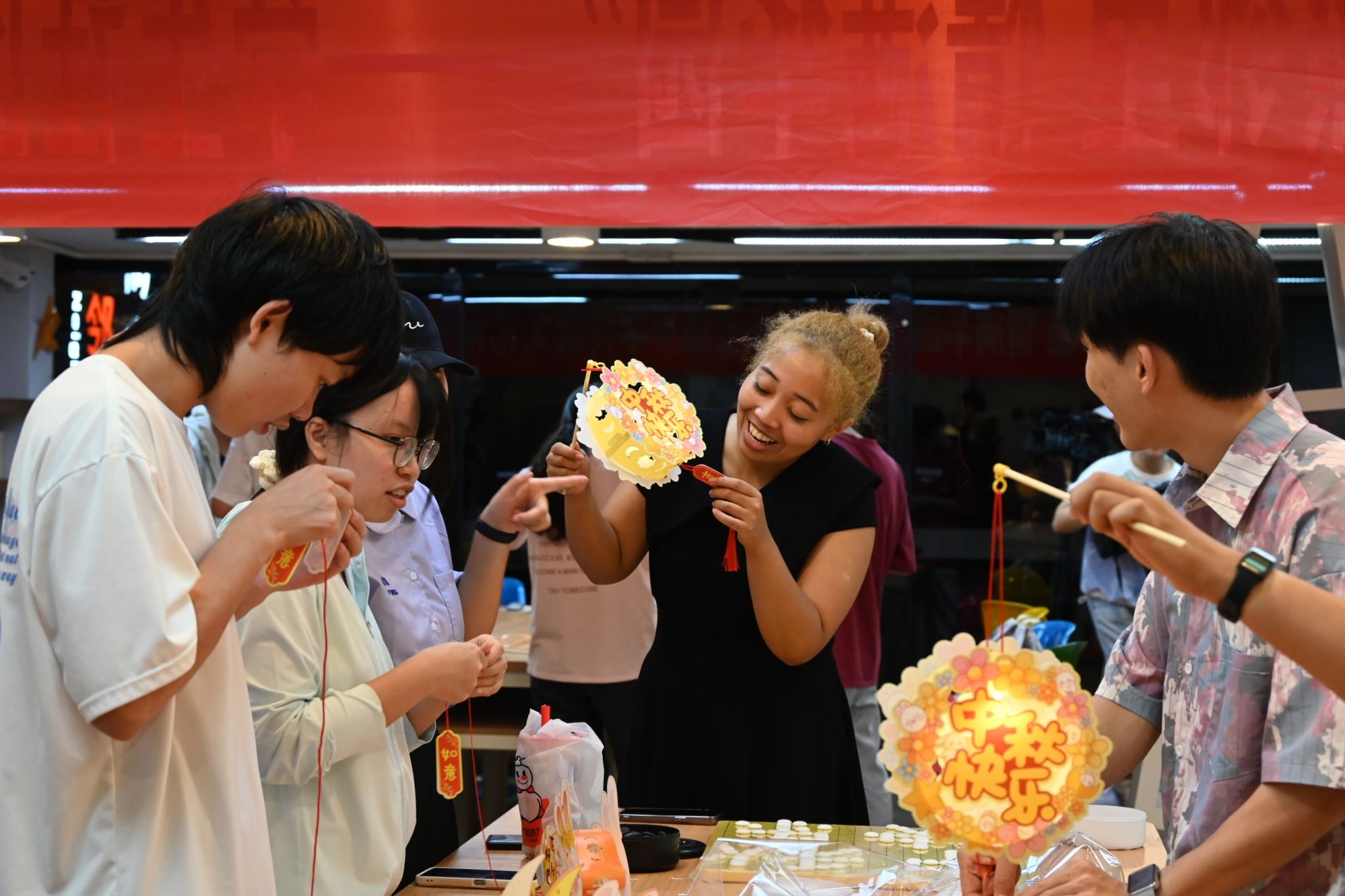 16日至17日晚,境内外同学在毓秀侨苑体验闽南中秋博饼活动;在邻里文化市集“侨光印月”活动现场沉浸式体验猜灯谜等民俗活动;在西苑餐厅及各学院动手揉搓面团、按压模具,体验做月饼的快乐;在侨缘邻里中心尝美食、观看中秋晚会……