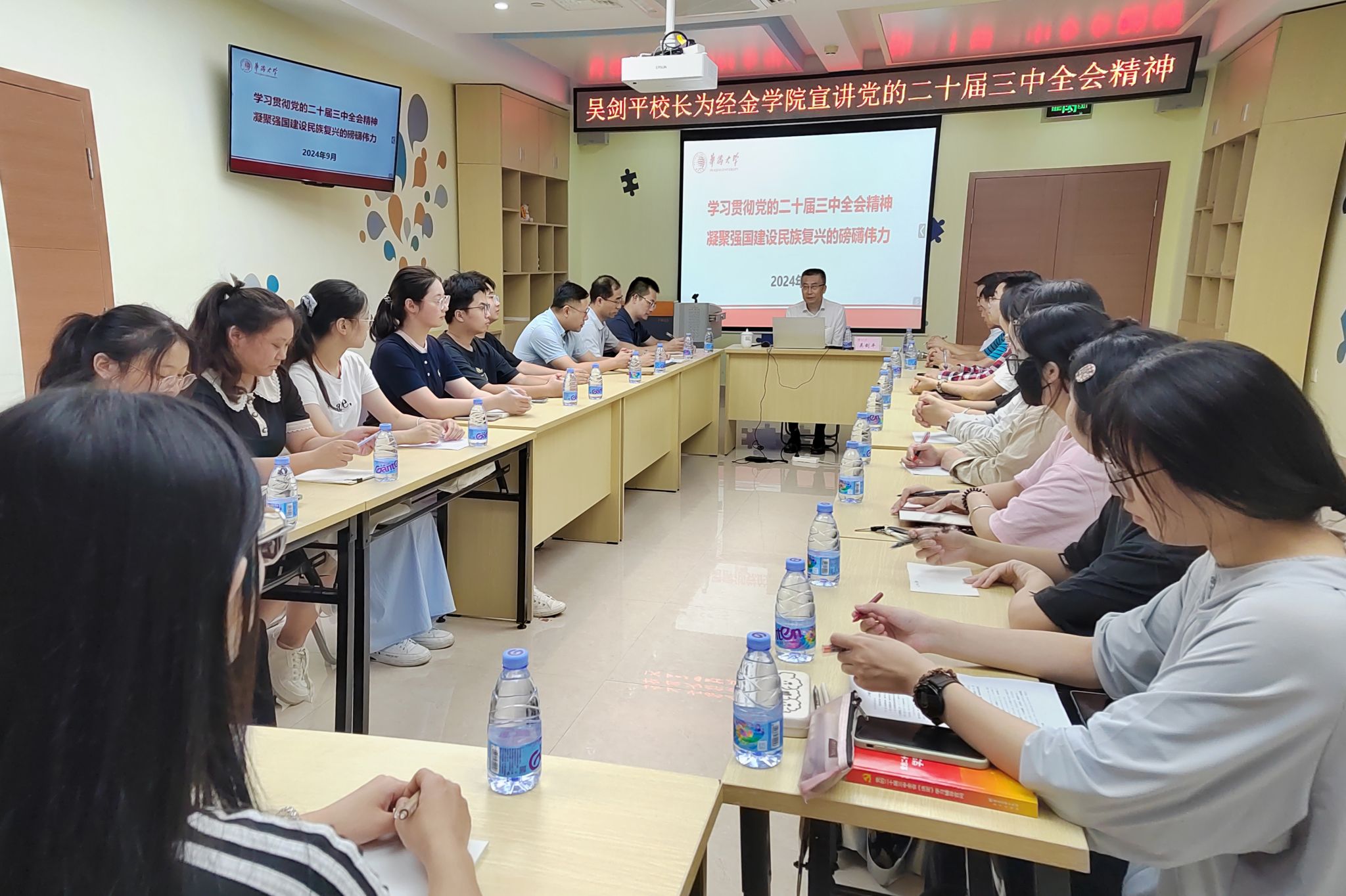 同时,校长吴剑平重点围绕深入学习领会习近平总书记在党的二十届三中全会上的重要讲话精神, 从党的二十届三中全会的基本情况、主题和国内外反响等4个方面,在经济与金融学院为师生代表作主题宣讲报告。