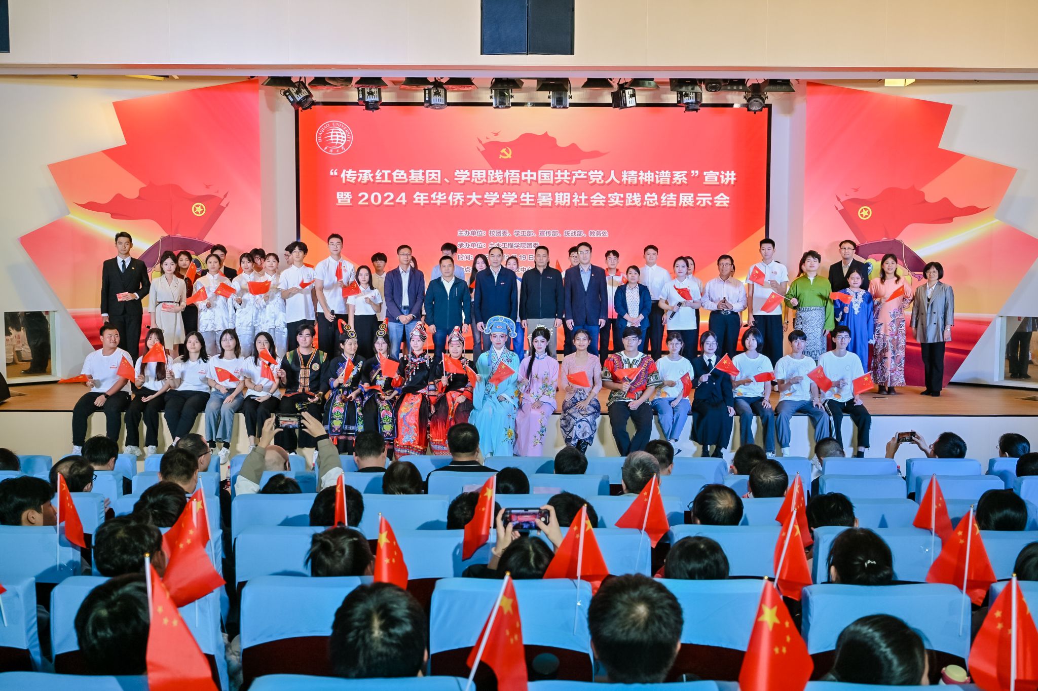 11月19日晚,“传承红色基因、学思践悟中国共产党人精神谱系”宣讲暨beat365唯一官网2024年学生暑期社会实践总结展示会在厦门校区举办。beat365党委常委、副校长王秀勇,集美区团区委书记张晓蕾出席活动。学校相关职能部处负责人、各学院分管学生工作负责人及学生代表等500余人参加。