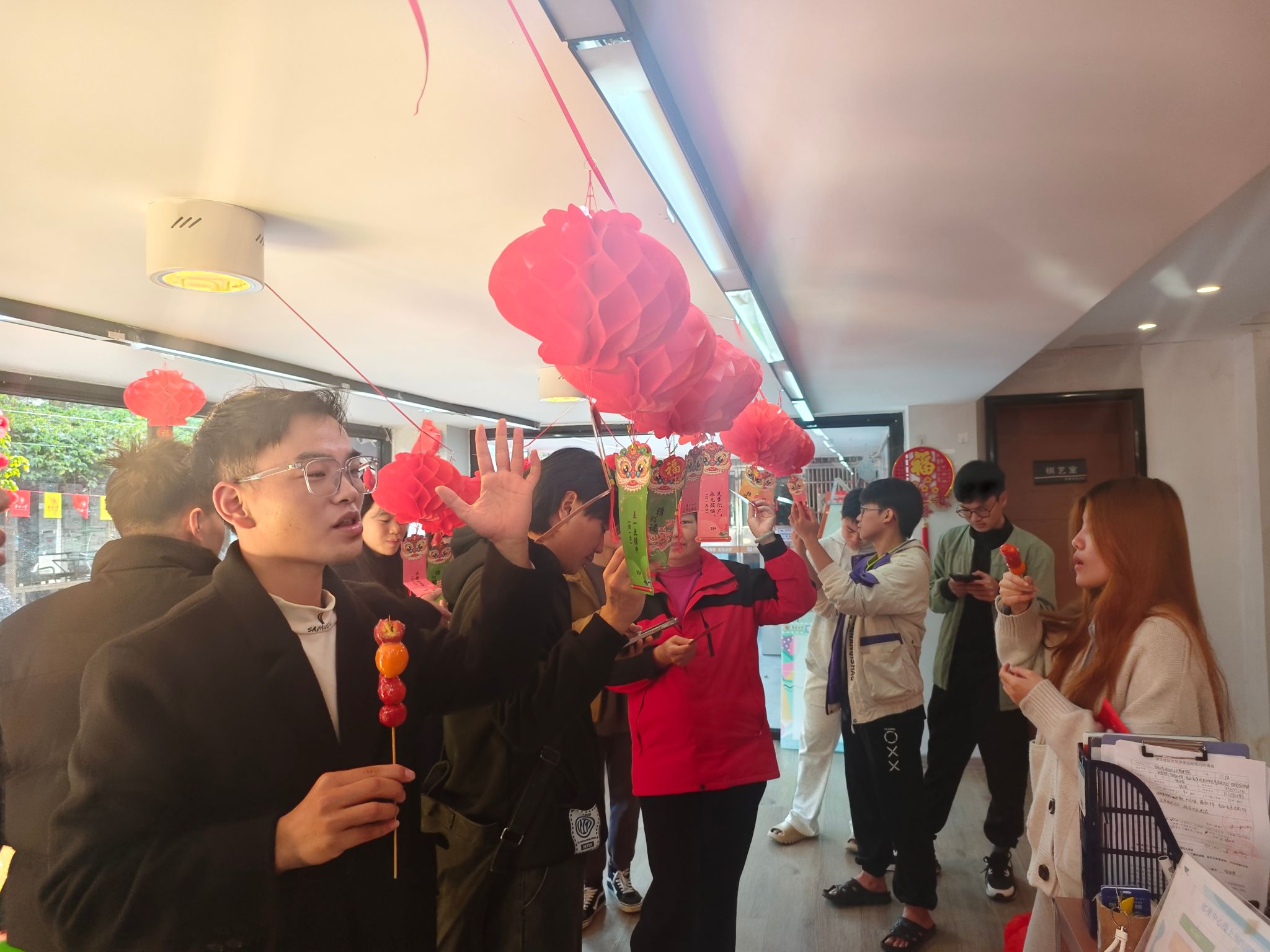 “在学校过年简直年味儿十足,做糖葫芦、做糖画、写春联、猜灯谜、蹴鞠……每一个环节都妙趣横生,让我充分体会到中华优秀传统文化的独特魅力。明年,我要和家人一起过春节,把这些民俗带回家,让他们也感受一下中国新年的欢乐吉祥。”经济与金融学院2023级泰国留学生李正康感慨道。