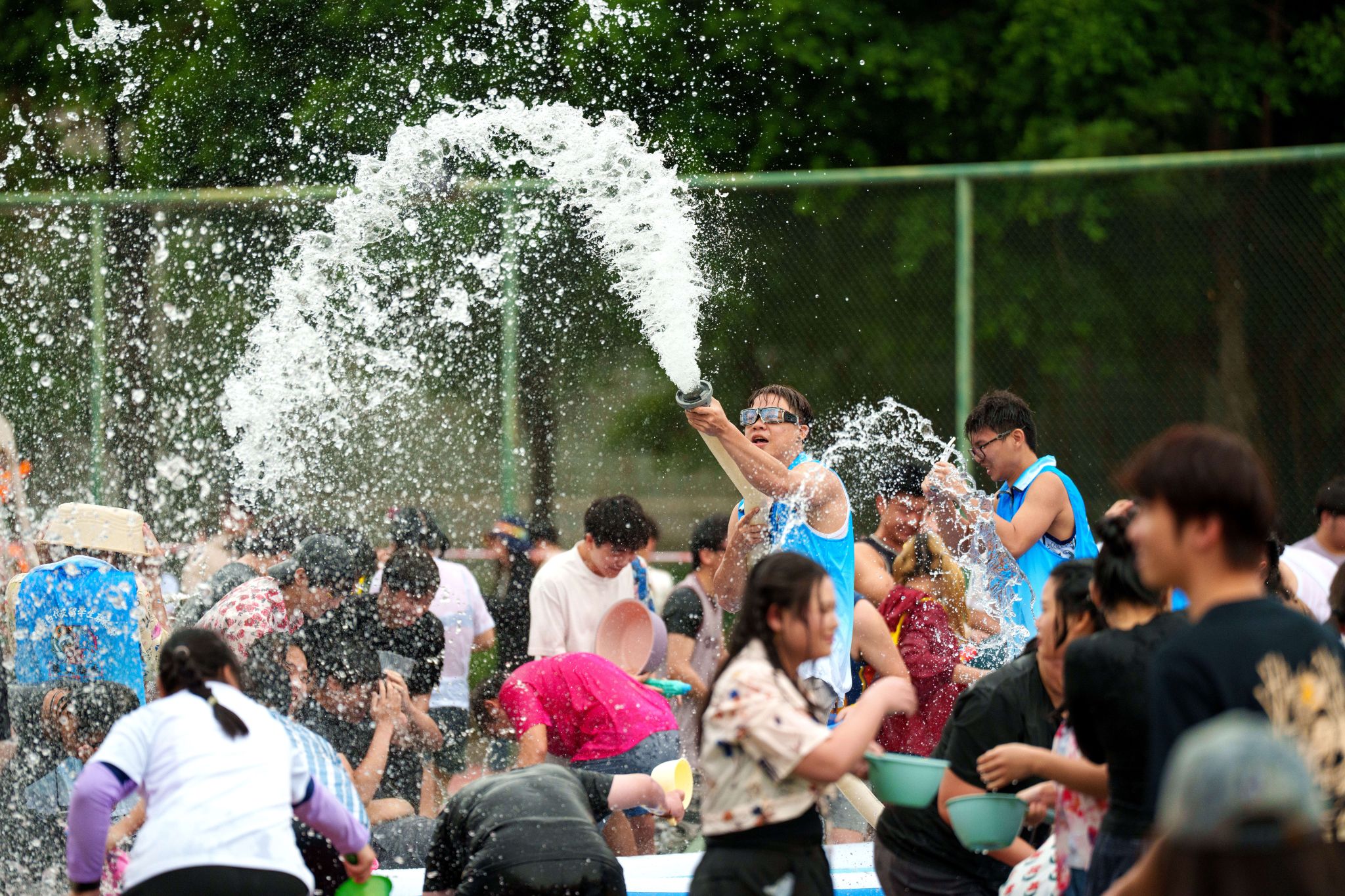 “现场的氛围太棒了!”活动现场,来自黑龙江的国际关系学院2024级新生张会哲正和朋友玩得不亦乐乎。她表示,华大的泼水节让她第一次亲身感受到了东南亚文化的魅力,“大家虽然互不相识,但在泼水的时候,我真切体会到了‘文化无国界’”。