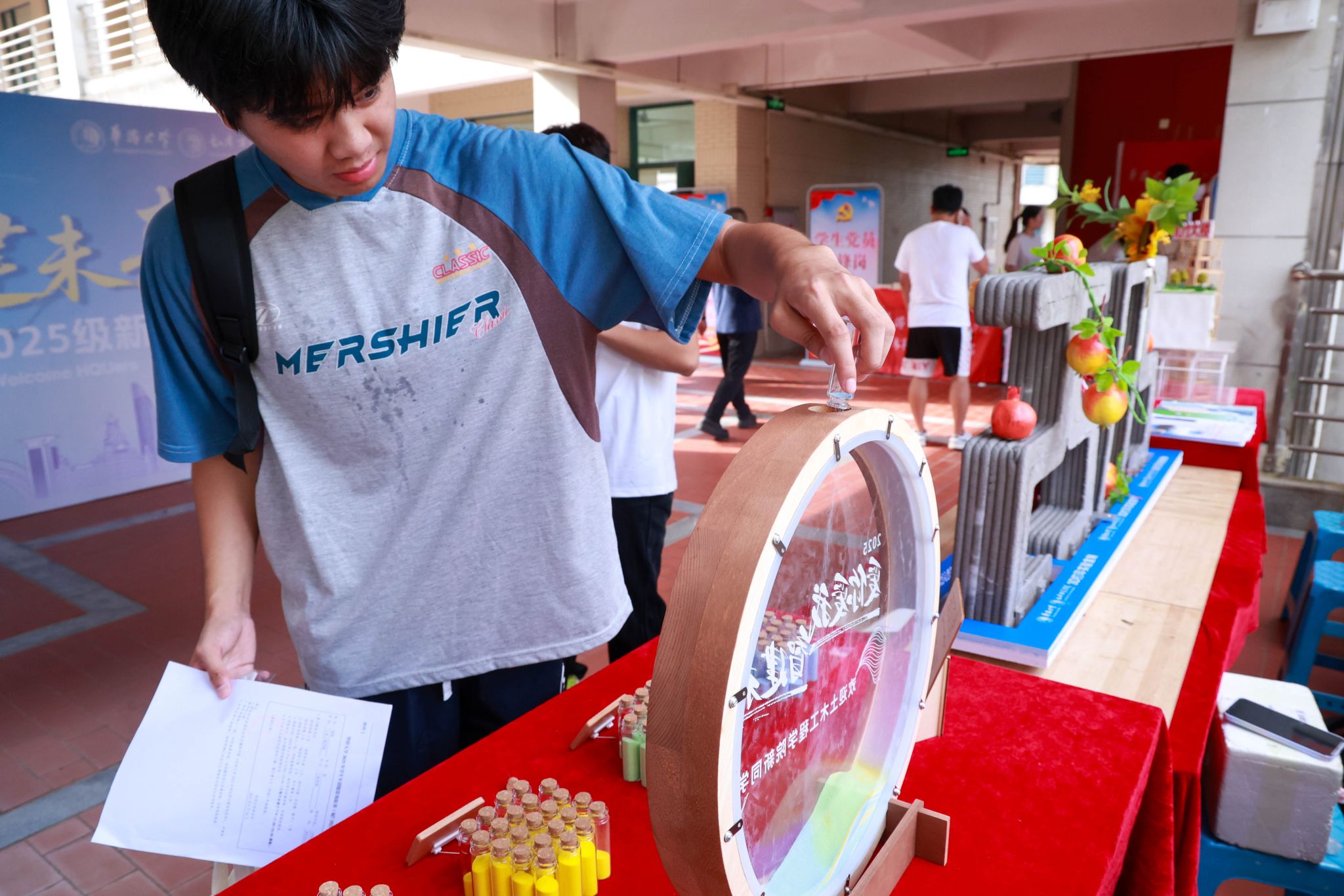 此外,新闻与传播学院利用拍立得记录下新生报到的难忘时刻,新生活就此启航;土木工程学院、建筑学院定制创意流沙签到框,凝聚新生力量,集体记忆生根发芽;哲学与社会发展学院开展闽南特色博饼活动,现场热闹非凡;化工学院精心设置五个盖章打卡点,还有生涯规划、反诈等答题互动,寓教于乐、新意十足……