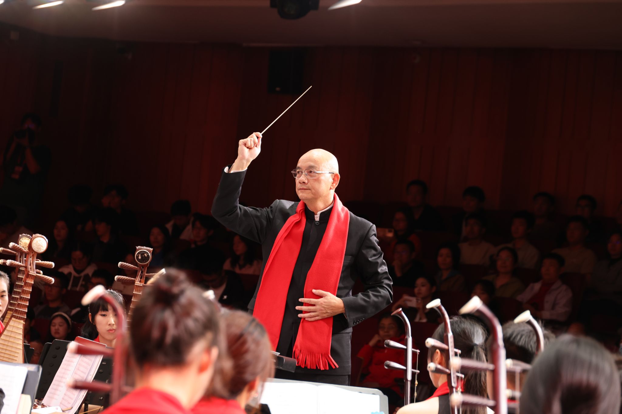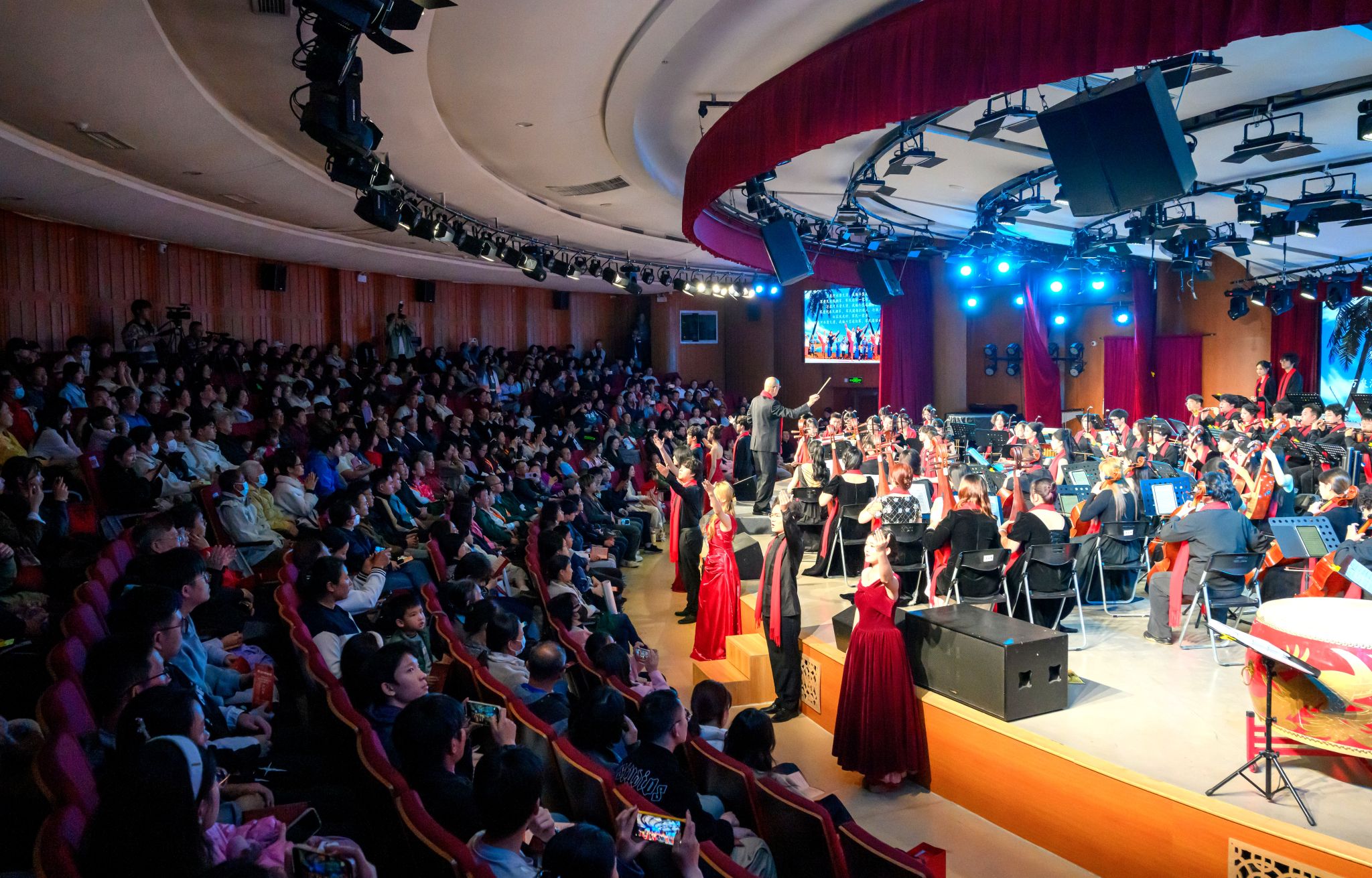 随后,《牧民新歌》《绣荷包》等作品相继上演,旋律清新质朴,展现民族音乐的多样风情和淳朴韵味。而《红色娘子军》选段《快乐的女战士》《万泉河水清又清》与民族管弦乐《天路》接连奏响,激昂的旋律中饱含深沉的家国情怀与团结奋进的力量。终曲《新龙舞》以欢腾热烈的节奏亮相,在铿锵的鼓点与飞扬的旋律中,对新年寄予美好憧憬。
