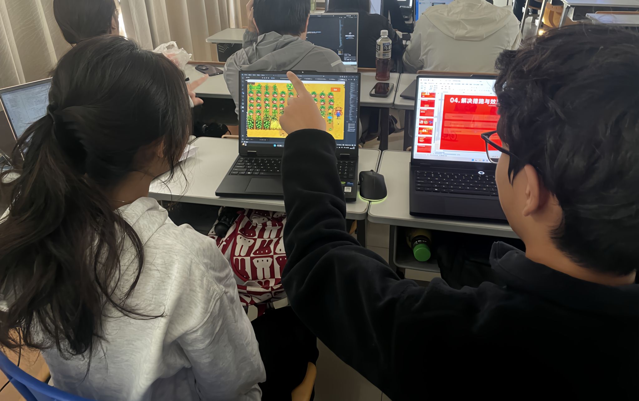 以化工学院2025级制药工程2班54位同学为样本。从参与情况看,同学们对这门课程的热情空前高涨:41位同学为掌握人工智能程序设计方法,花费24个小时以上学习时间;13位同学花费48个小时以上时间,研究如何使用更好的路径去达成学习目的。他们在期末考试中也表现出色:“手势控制‘打地鼠’”把编程课变成了边做边改的趣味现场,“手势控制飞机大战”把童年游戏玩出了新花样,“离子方程式配平助手”把化学学习工具做得既实用又顺手……诸如此类创意十足的AI作品层出不穷。