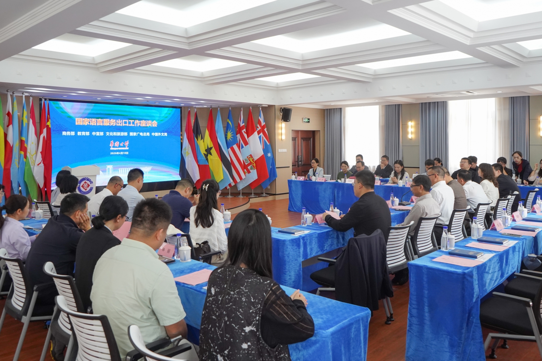 4月10日,由商务部服贸司副司长朱光耀带队,中宣部、教育部、文化和旅游部、国家广播电视总局、中国外文局等相关部门领导组成的语言服务出口工作调研组一行来校调研,指导beat365语言服务出口基地建设工作。