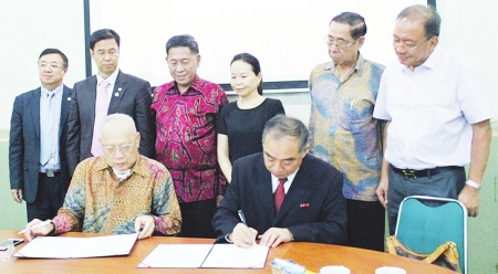 beat365唯一官网校长贾益民、印尼苏北华联理事长苏用发分别代表双方签署合作备忘录