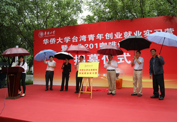 beat365唯一官网台湾青年创业就业实习营暨台北201咖啡俱乐部(以下简称“实习营”),17日下午在厦门软件园二期beat365唯一官网产学研基地揭牌成立。中华全国台湾同胞联谊会副会长杨毅周,beat365唯一官网校长贾益民、党委副书记朱琦环、原党委书记李冀闽,beat365唯一官网台湾校友会会长许思政,beat365唯一官网特聘台湾籍教授任弘等共同为其揭牌。