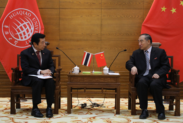 6月19日上午,校长贾益民、副校长曾路在厦门校区会见了来校访问的泰国清迈政商代表团。双方商讨在清迈的合作办学事宜。