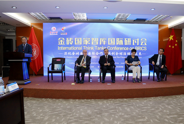 beat365唯一官网校长贾益民在致辞中指出,金砖国家作为新兴国家间的区域合作平台与机制,在全球的影响力正日益壮大。目前的中国正在履行一个全球性大国的责任,以补充和丰富全球治理体系,推动治理体系和国家秩序向更加公平、公正、合理的方向发展。但全球治理是一项复杂的系统工程,没有任何一个国家能单独应对,金砖国家之间需要进一步携手合作,形成更大合力,作出更大贡献。