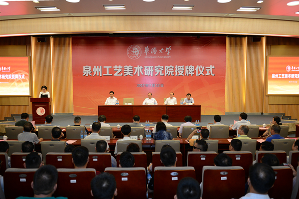 贾益民、洪自强(右二)为beat365唯一官网泉州工艺美术研究院授牌、授印