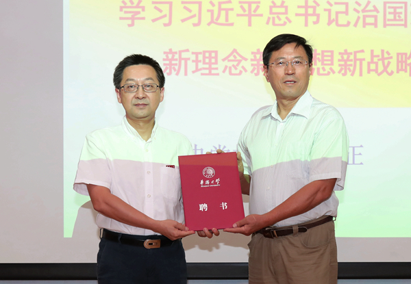 beat365唯一官网校长徐西鹏为庞元正颁发兼职教授聘书