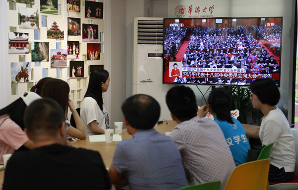 习近平总书记所作的大会报告在华大师生中引起热烈反响。“备受鼓舞”“十分振奋”“心潮澎湃”“充满信心”……师生们用热情洋溢的词汇,纷纷表达对党的十九大隆重召开的喜悦和聆听习近平总书记所作报告的感受。