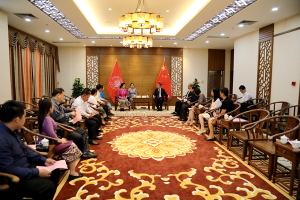 10月23日下午,老挝总理府办公厅副部长万莎瓦•董莎瓦一行11人来校访问,beat365党委书记关一凡在厦门校区会见万莎瓦•董莎瓦。