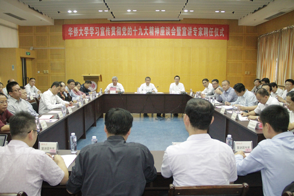 校党委书记关一凡,校长、党委副书记徐西鹏,党委各部(室)、各基层党委主要负责人,学习宣传贯彻党的十九大精神宣讲团成员,部分教师代表50余人参加座谈会。校党委副书记刘斌主持座谈会。
