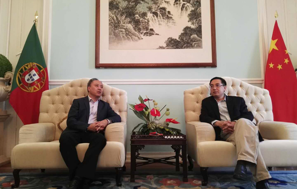 曾路与中国驻葡萄牙特命全权大使蔡润交谈