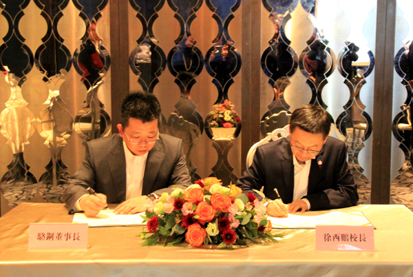 徐西鹏与骆钢签署捐赠协议,并代表学校向骆钢颁发捐赠证书,感谢其为学校发展作出的重要贡献。