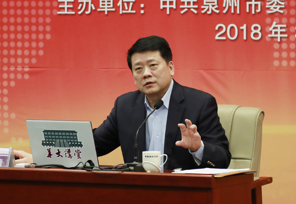 当日,“华大讲堂”第72讲在陈嘉庚纪念堂四层科学厅举行。秦亚青以“世界秩序与共商共建共享的全球治理——学习2018年全国两会精神”为题,与到场的听众分享他对于国际形势的见解。