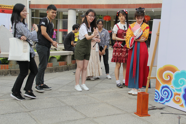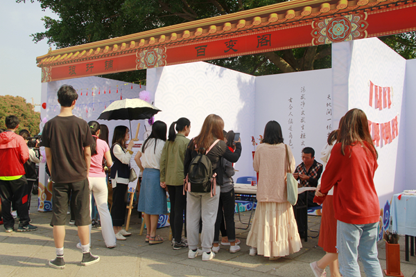蒹葭汉服社、Ourlife生活创意协会、中医药文化协会、书画协会、茶苑协会等学生社团用传统文化市集的方式,展示文创产品和富含传统文化的小游戏,让师生、游客体验丰富的中华传统文化。