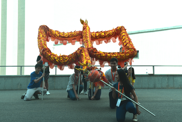 营员学习舞龙表演