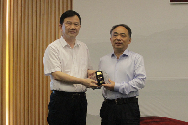 陈灿辉为邓纯东颁发“华大讲堂”主讲嘉宾纪念牌