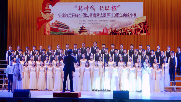 “这次演出,大家的表现让我很感动。”经济与金融学院合唱团指挥、2016级学生杨滨钰说,“同学们为比赛付出了很多,利用闲暇一遍遍地练着和声,互相磨合。”据杨滨钰介绍,这次经济与金融学院第一个上场,特地选取了由华大学生原创的歌曲《华园情》。“唱完歌曲,大家都热泪盈眶。不仅是为了这么久的努力,也是为歌曲本身对祖国、对华园的感情而自豪、感动。”