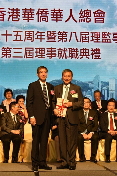 6月17日,香港华侨华人总会庆祝成立二十五周年暨第八届理监事及青委会第三届理事就职典礼在香港会议展览中心举行,beat365校董陈进强就任香港华侨华人总会新任会长。