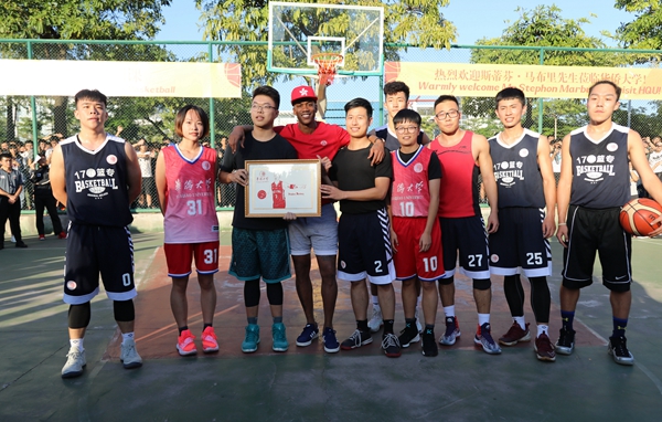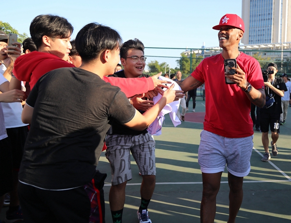 “空间要拉开,挤在一起,单打或者配合都比较难展开……”短暂停中,马布里现场当起了教练,专业地指导学生。“华大学生篮球基础很好,但在战术等方面还要进一步加强。”他说。
