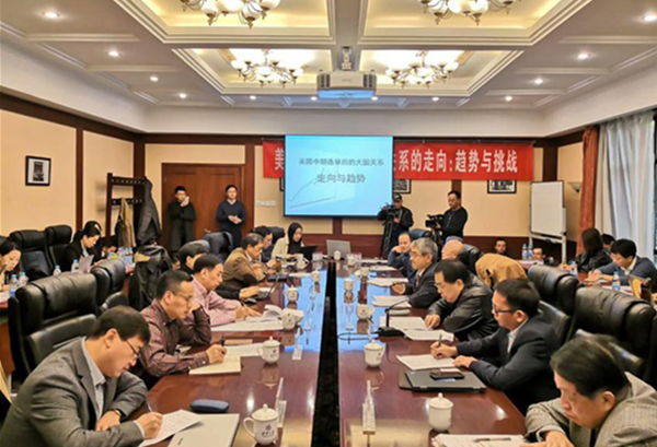 来自中共中央党校(国家行政学院)、国防大学、国务院发展研究中心、清华大学、北京大学、中国人民大学、中国社科院亚太所、中国国际问题研究院、中国现代国际关系研究院、北京外国语大学、南开大学、复旦大学、外交学院、对外经贸大学等机构的近50位知名学者与会,围绕“中美关系发展趋势与挑战”“其他大国关系变化趋势与挑战”“美国及相关问题与趋势研究”等主题展开研讨。研讨会恰逢当前中美关系正处于敏感微妙的时期,备受关注,中央电视台及多个省市卫视都到场采访报道。